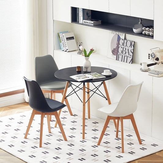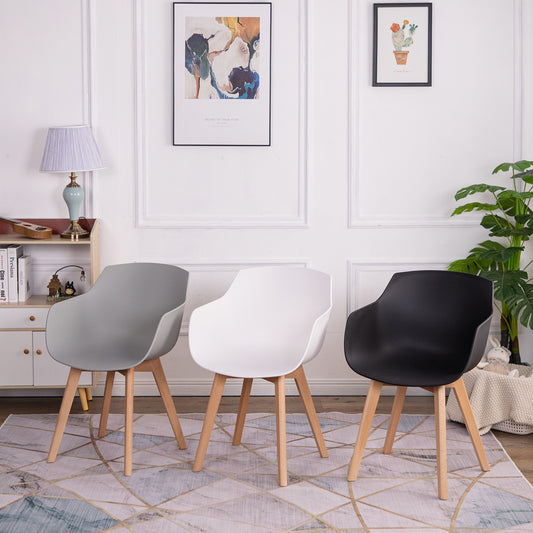 CLOVER Modern PP Plastic Shell Chair Armchair with Beech Legs Set of 4 - Black/White/Gray