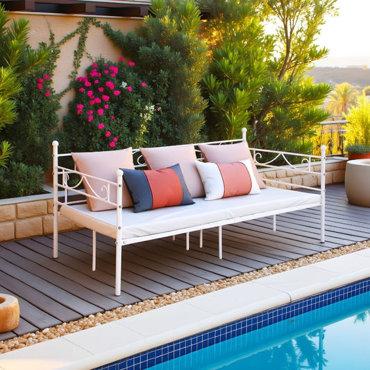 FLAT Single Solid Wood DayBed Frame 90x190cm - Wood/White