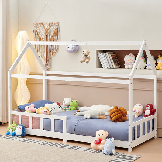 Kids Single House Bed 97*196cm-Wood/White-YORK