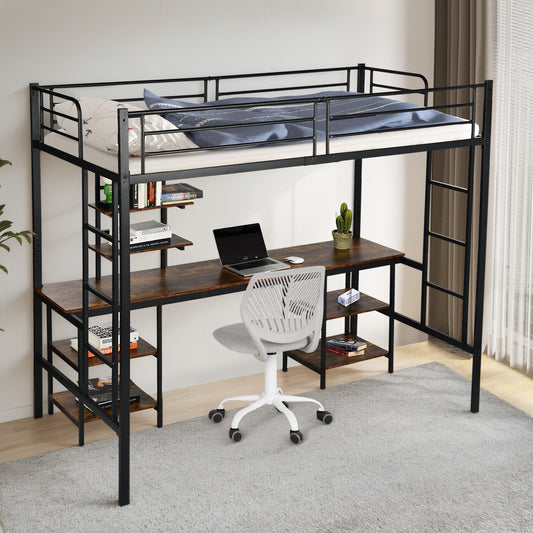 Twin Loft Bed with Desk and Bookcase Black - ESOFEA