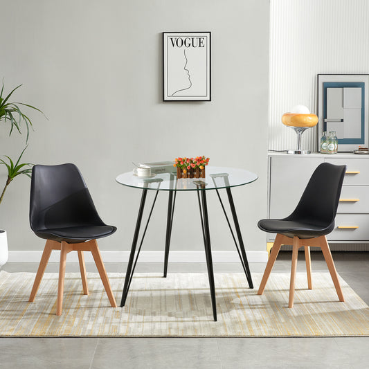 80cm Round Table Glass Top Black Steel Hairpin Legs - UDINEGL