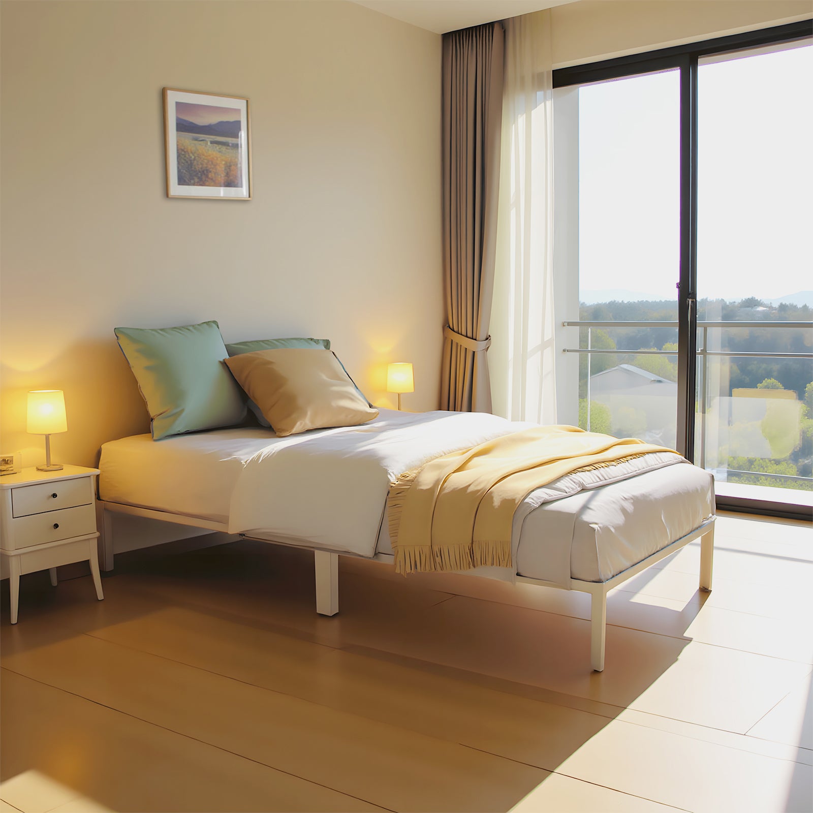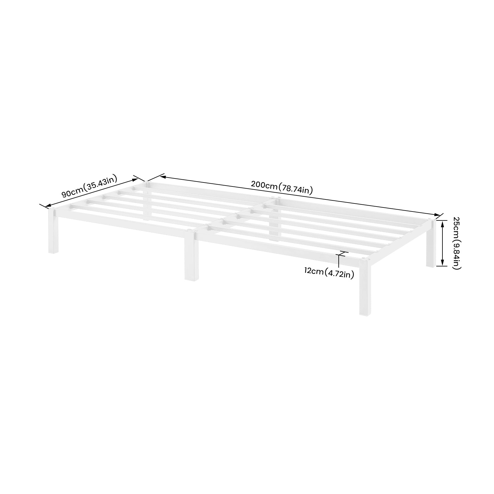 This sleek and minimalist iron single bed frame combines practicality with elegance, making it the perfect addition to any bedroom. Crafted from high-quality iron, the bed frame is built to be both sturdy and durable. The careful anti-rust treatment ensures it remains in excellent condition even after long-term use. With a thoughtful design, the distance between the ground and the bed frame is 25cm, offering just enough space to occasionally store small items underneath. The classic white finish adds a touch of simplicity and brightness to your space.
