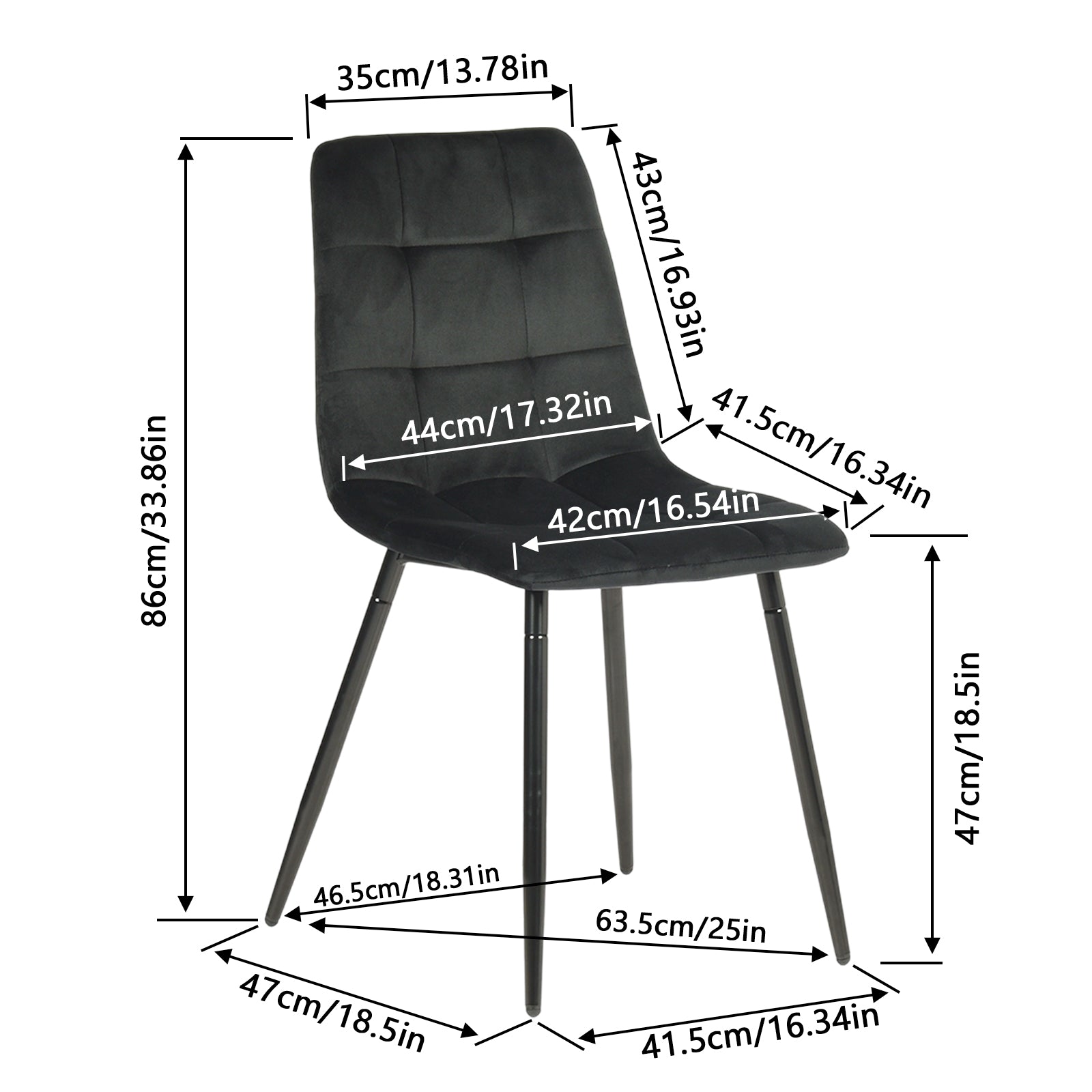 This fabric dining chair will add an elegant touch to your space, perfectly blending luxury and comfort. The chair is upholstered in classic black premium velvet/grey linen/brown leather, offering a soft, smooth feel and durable construction. High-density foam padding provides a luxurious seating experience and resists deformation. The elegant seat frame complements the stylish black iron legs, creating a modern and sophisticated look that blends seamlessly into any environment.