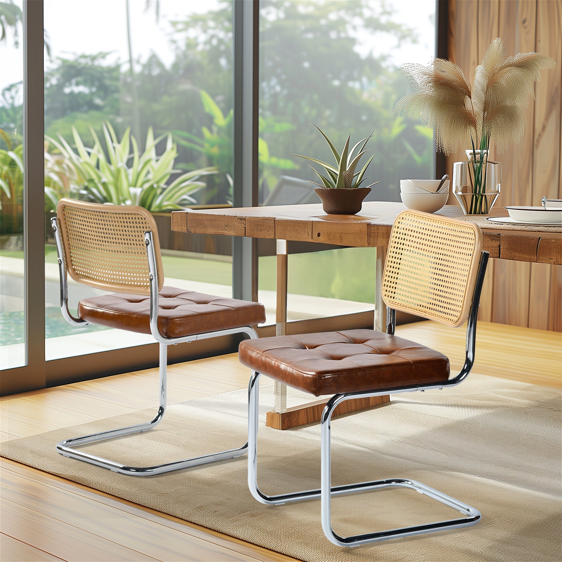 📦 Wide applicability: Whether it is a family dinner, a small gathering with friends or enjoying leisure time alone, this rattan chair can be perfectly integrated into various scenes. Its elegant design and comfortable sitting feel allow every user to feel the warmth and comfort of home. At the same time, the load-bearing capacity of each chair is up to 120kg, which meets the needs of users of different body shapes and ensures safety and stability during use.