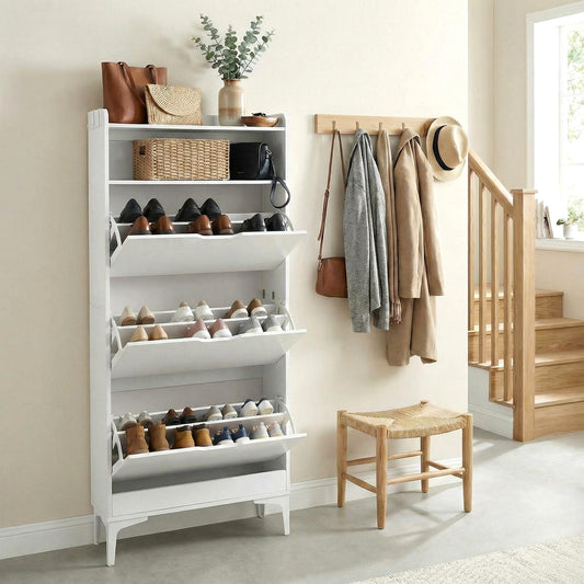 MELVIN Shoe Cabinet 3 Flaps Shoe Rack Shoe 60 x 159.3 cm - MDF White