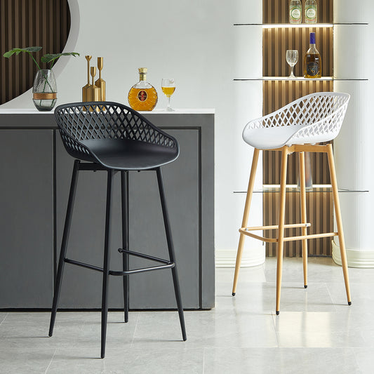 Modern Wrought Iron Bar Stools, 87cm high, with openwork backrests, set of 4 - Black/White