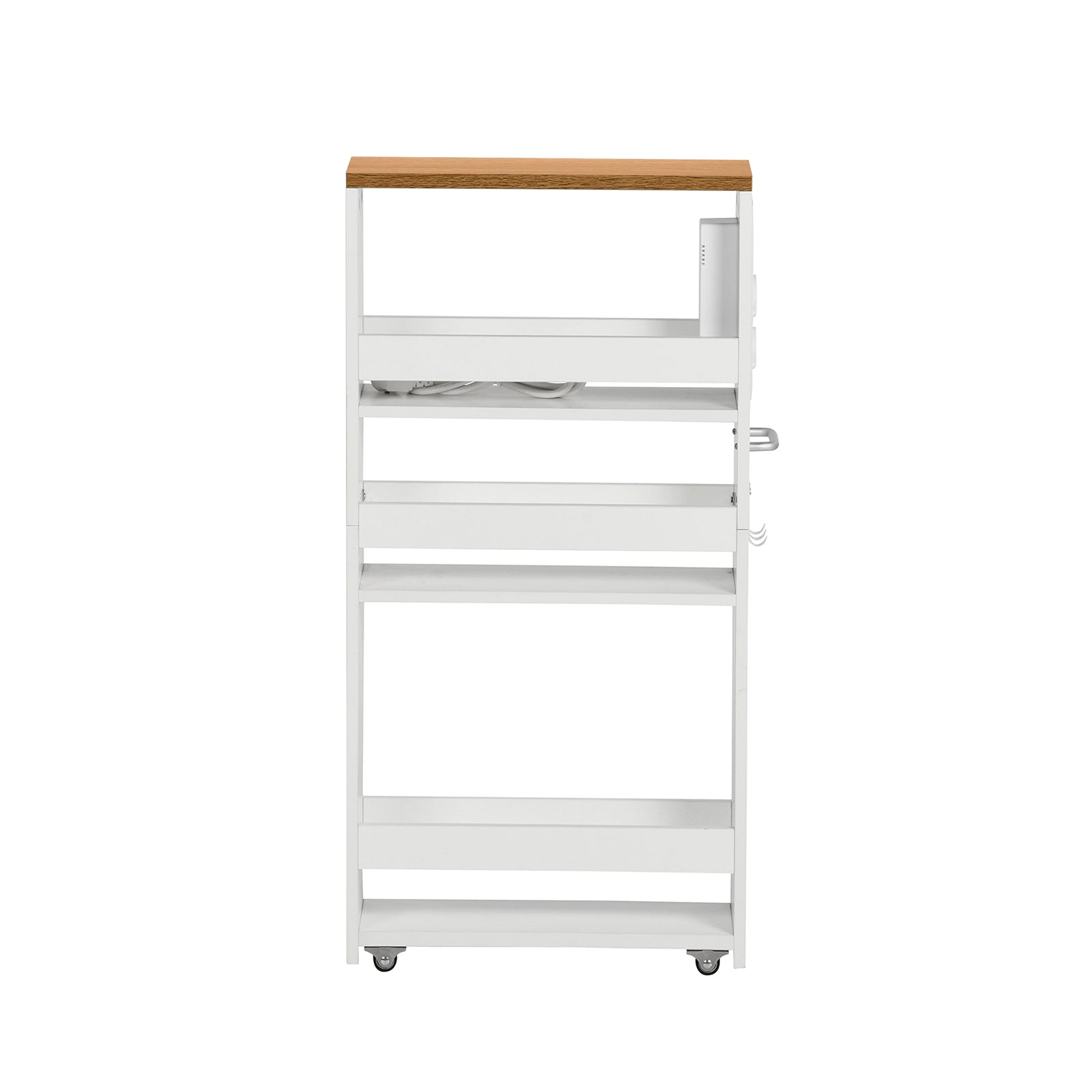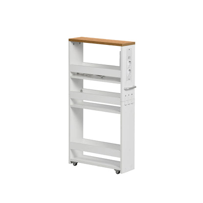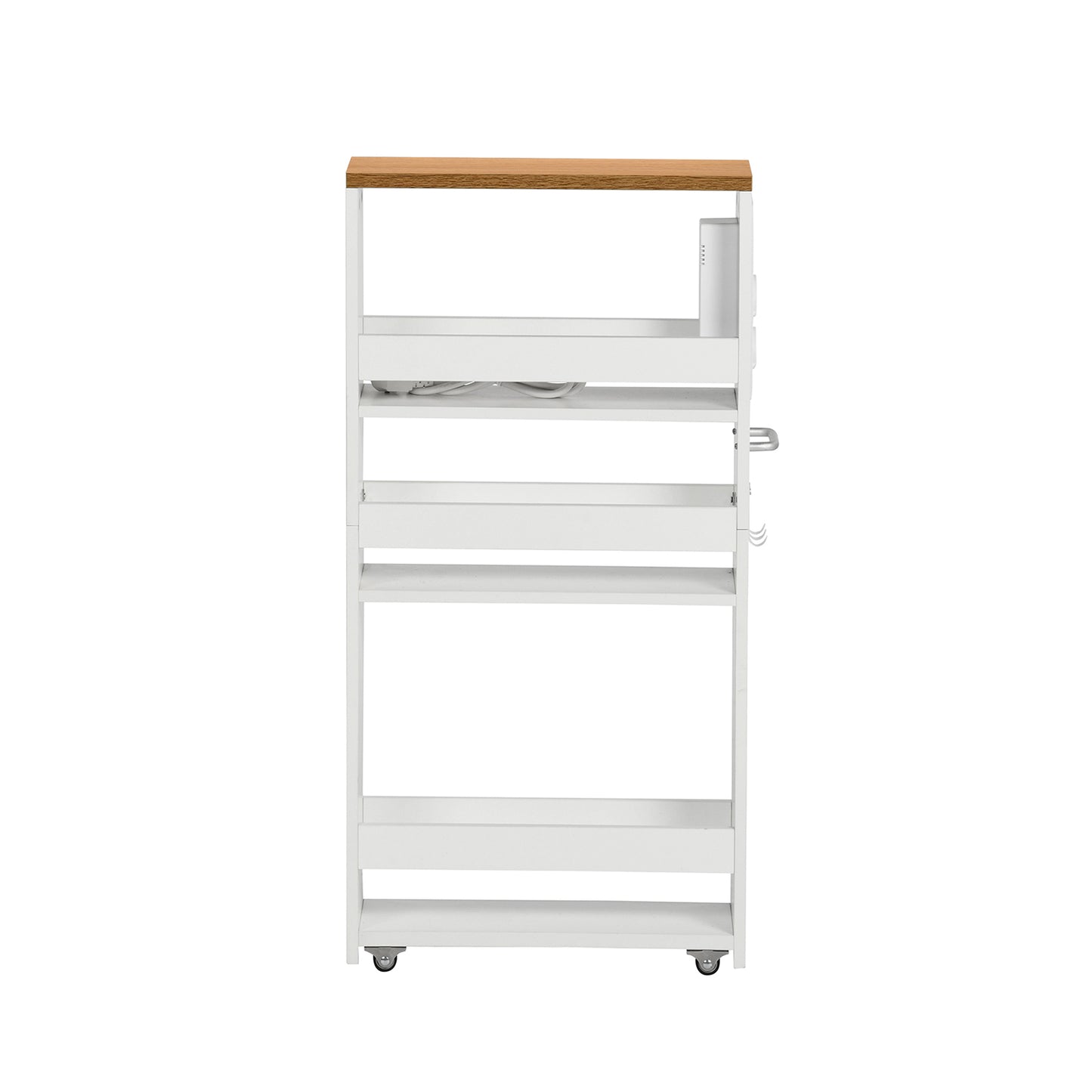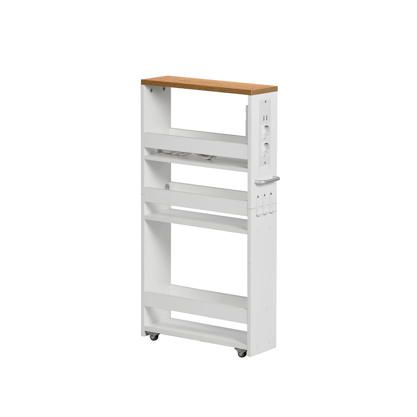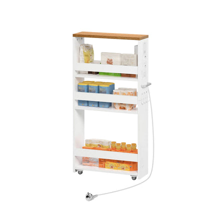 4-Tier Narrow White Storage Cart with Power Strip & Wheels |