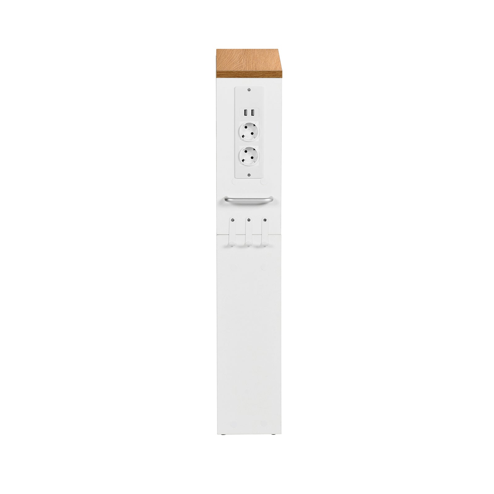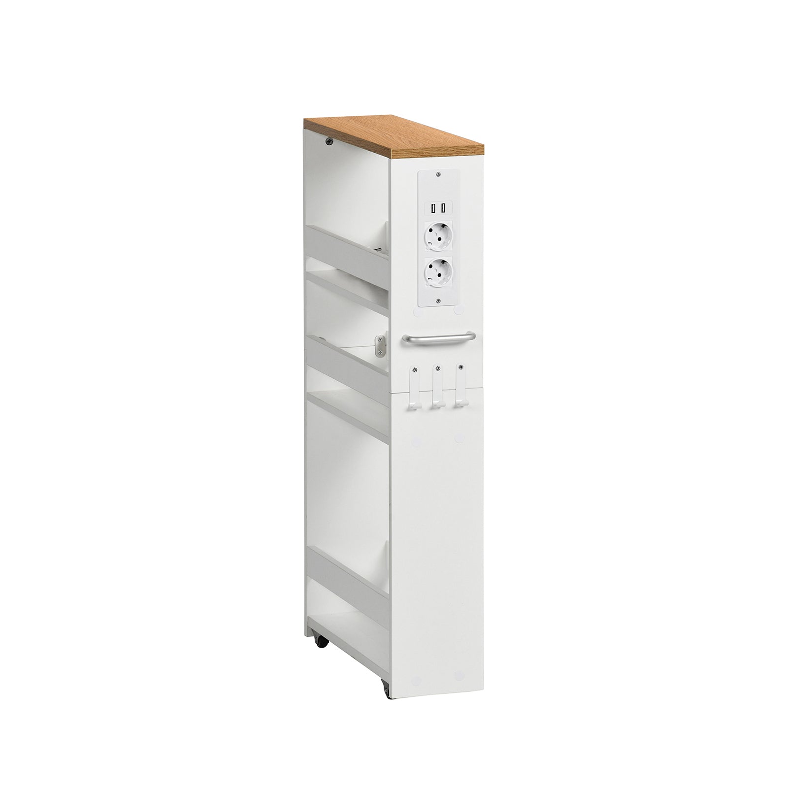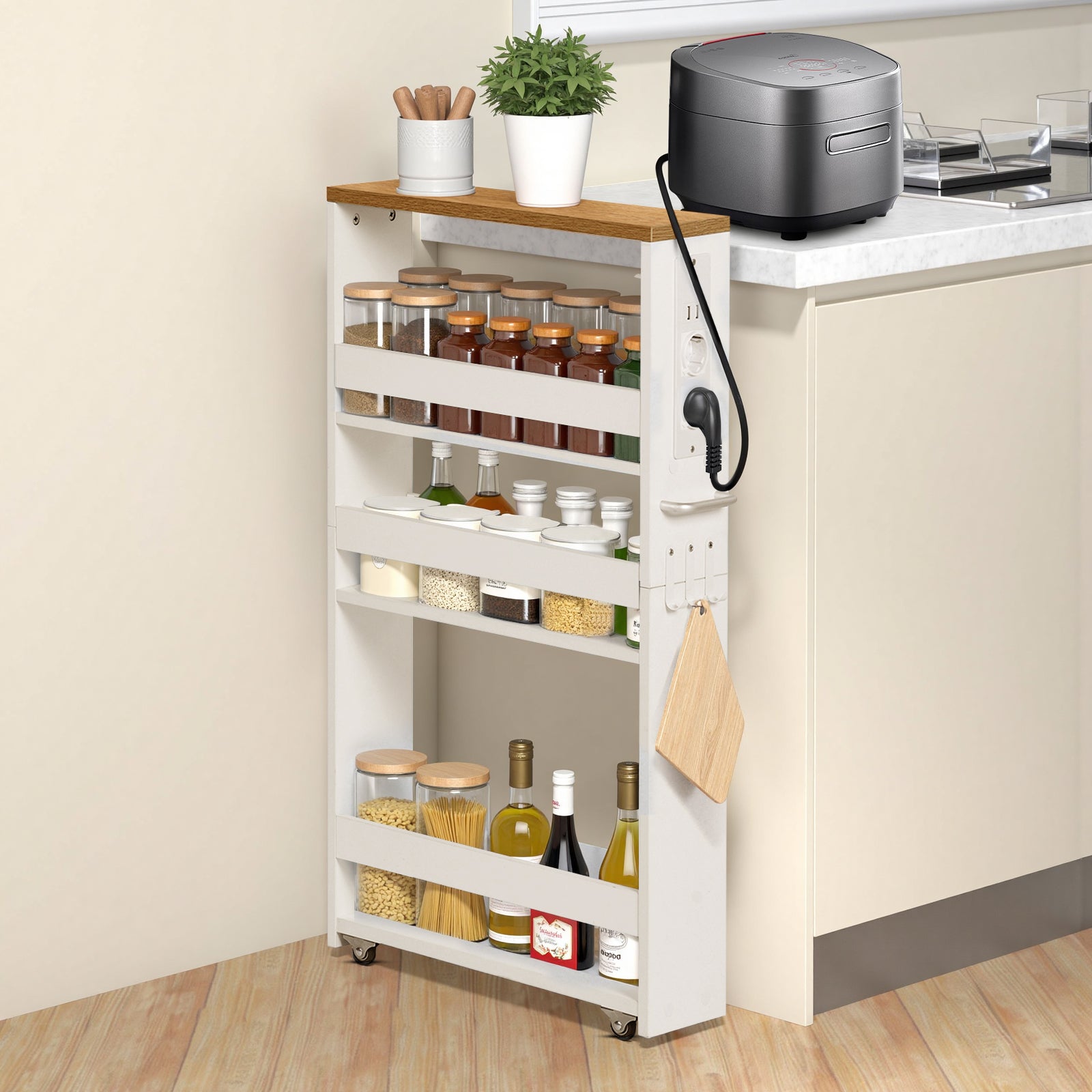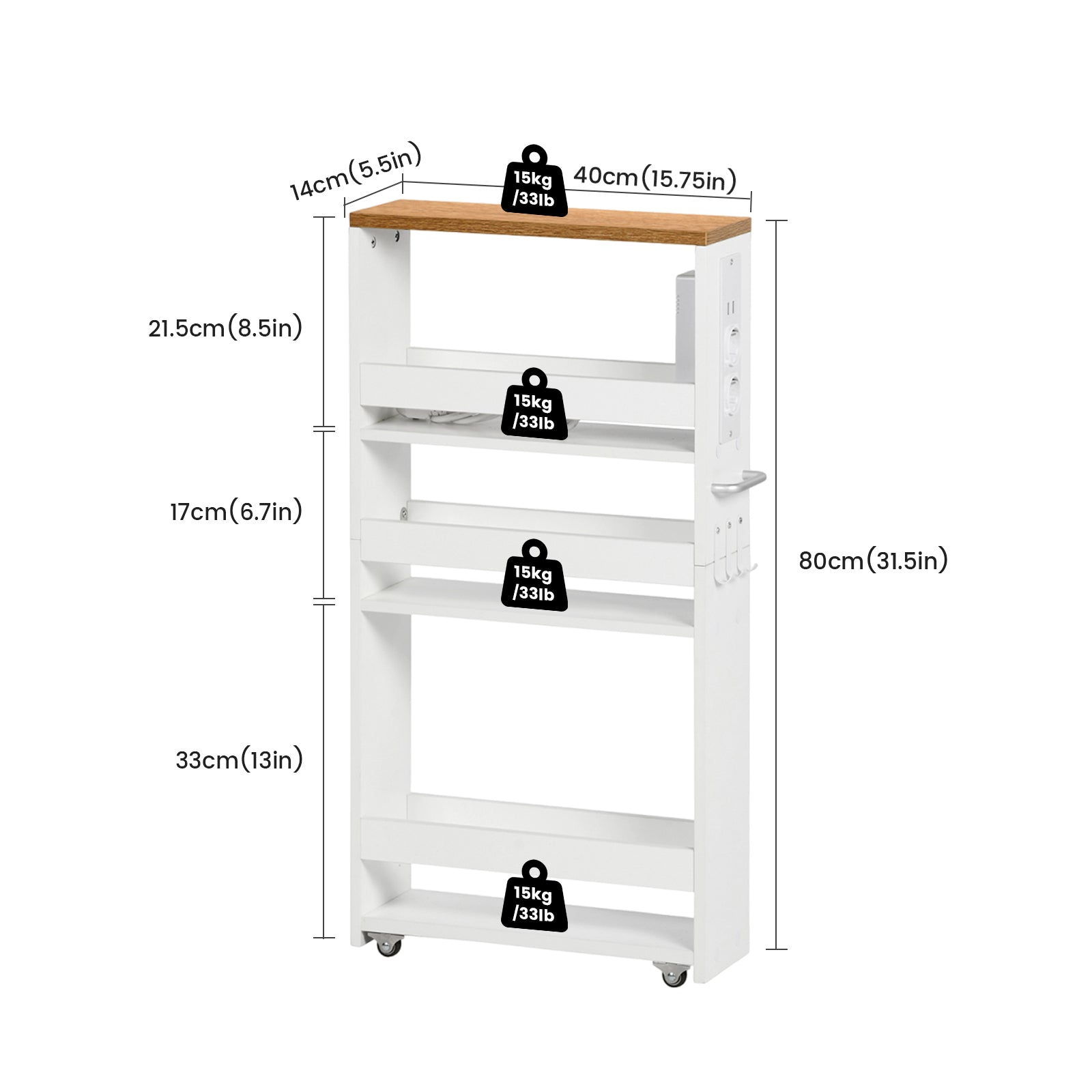 4-Tier Narrow White Storage Cart with Power Strip & Wheels |