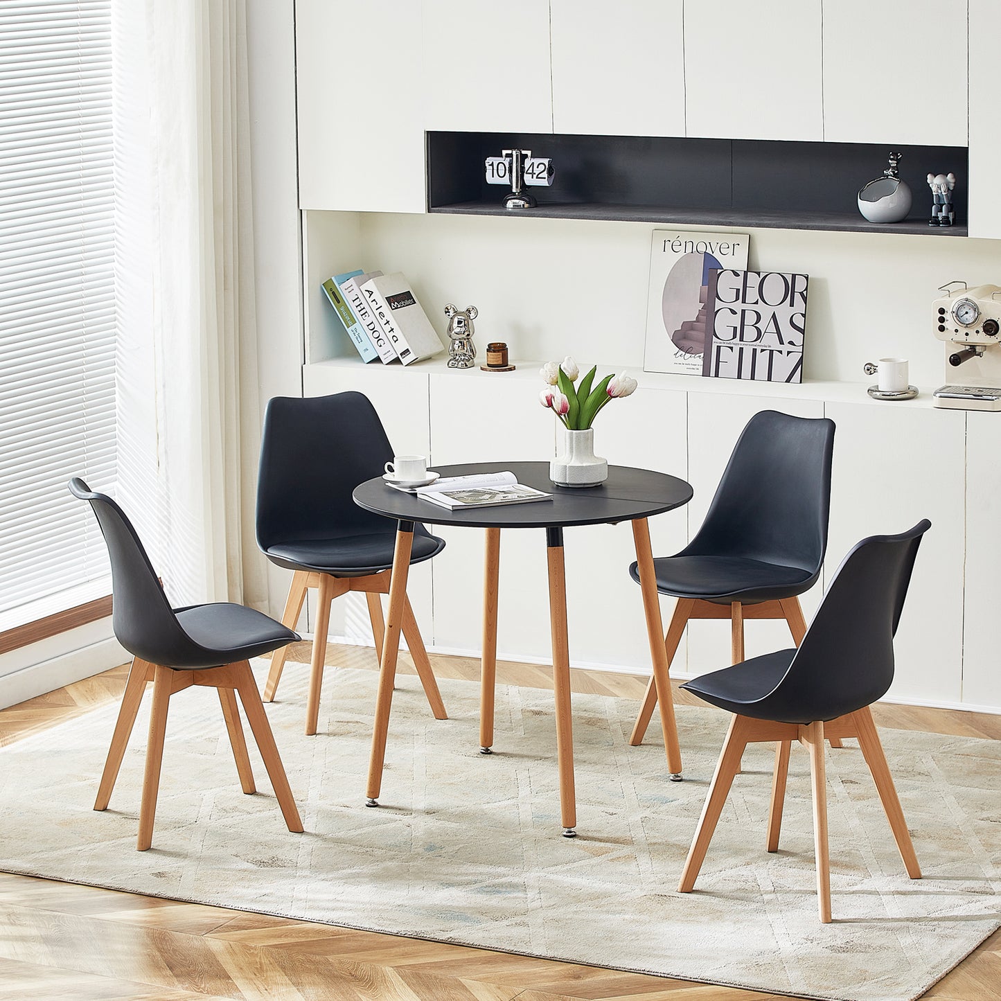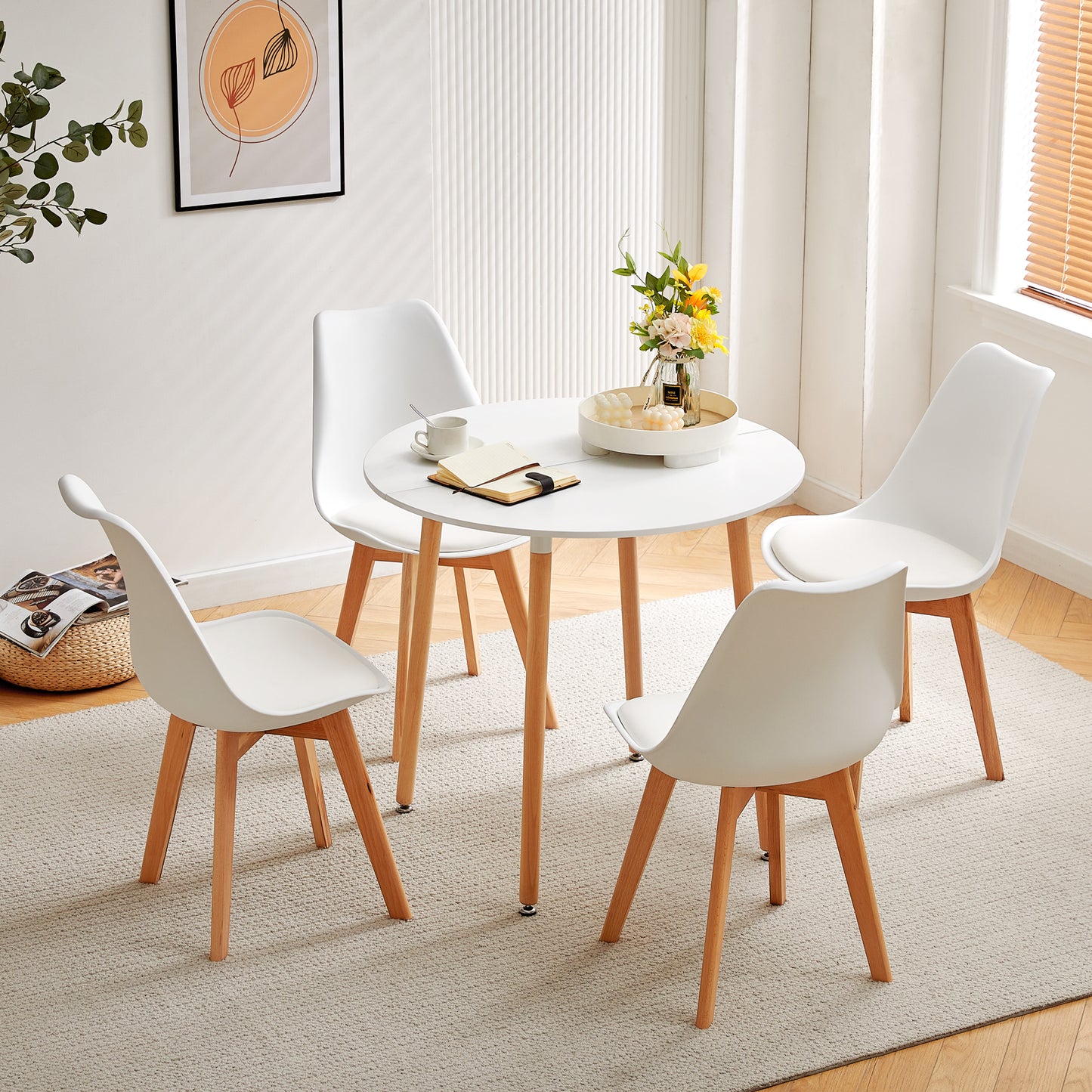 This round kitchen dining table boasts a warm and space-saving design with a Scandinavian style, making it an ideal choice for urban young adults.