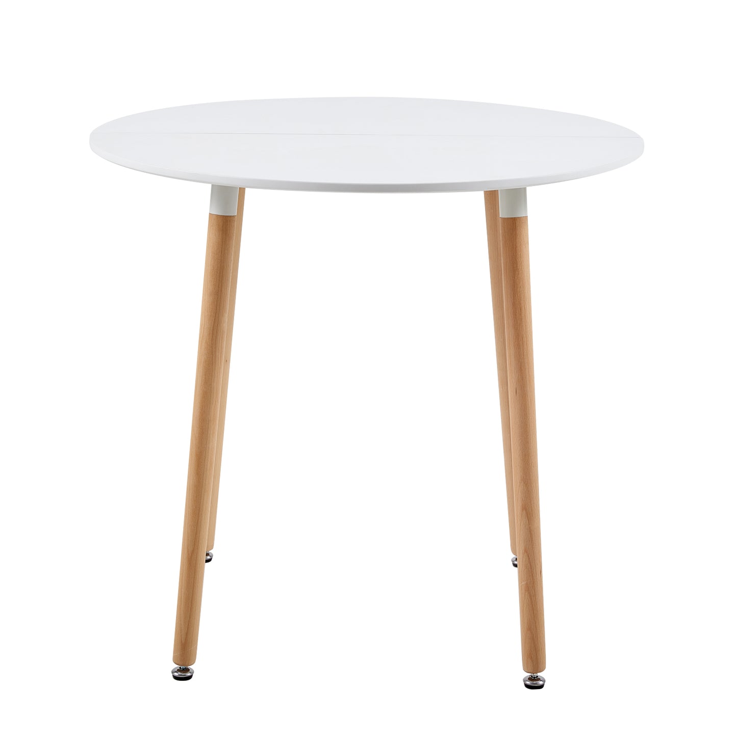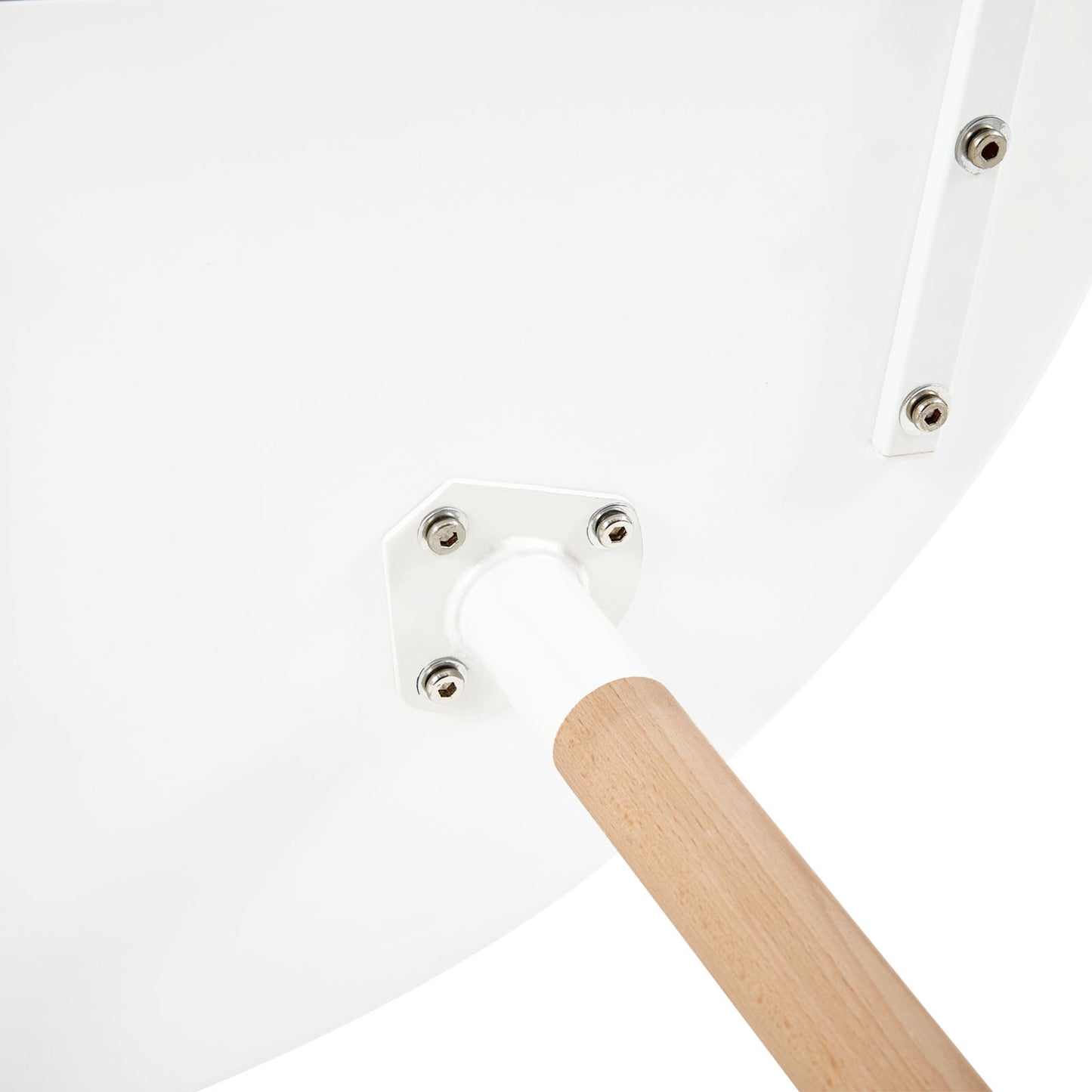 - Featuring a white MDF tabletop and light solid wood legs, this table exudes the cozy and inviting ambiance of popular Scandinavian design, making it a perfect addition to any home decor.