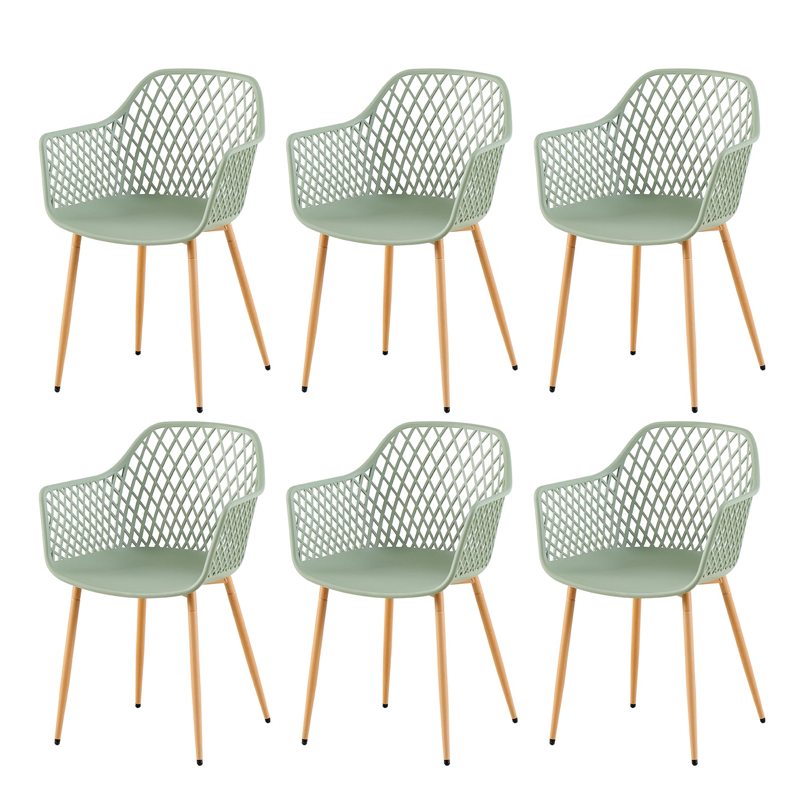 ROME Openwork armrest PP material dining chairs (Set of 4/6) - Grayish green