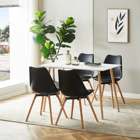 LEYDEN Creative Dining Side Chair con gambe in faggio (set da 2/4) - Nero/Bianco