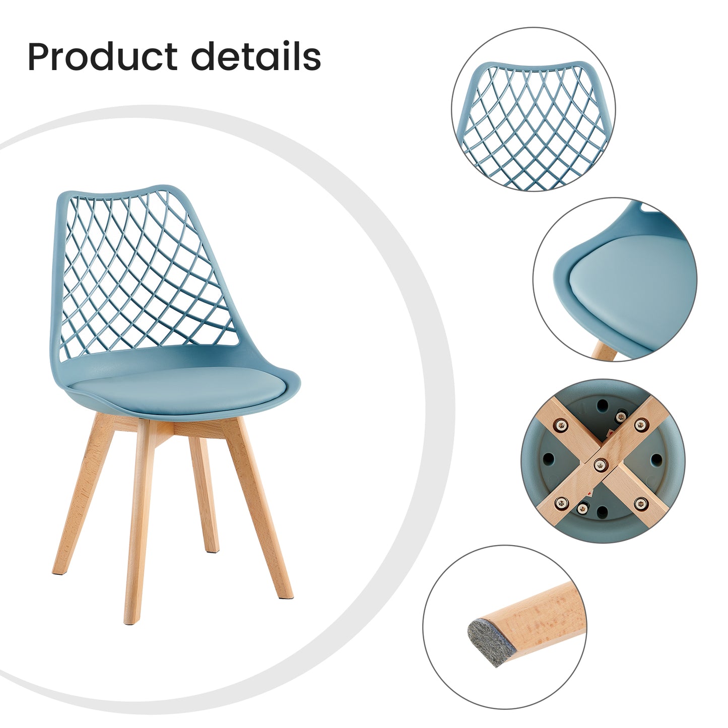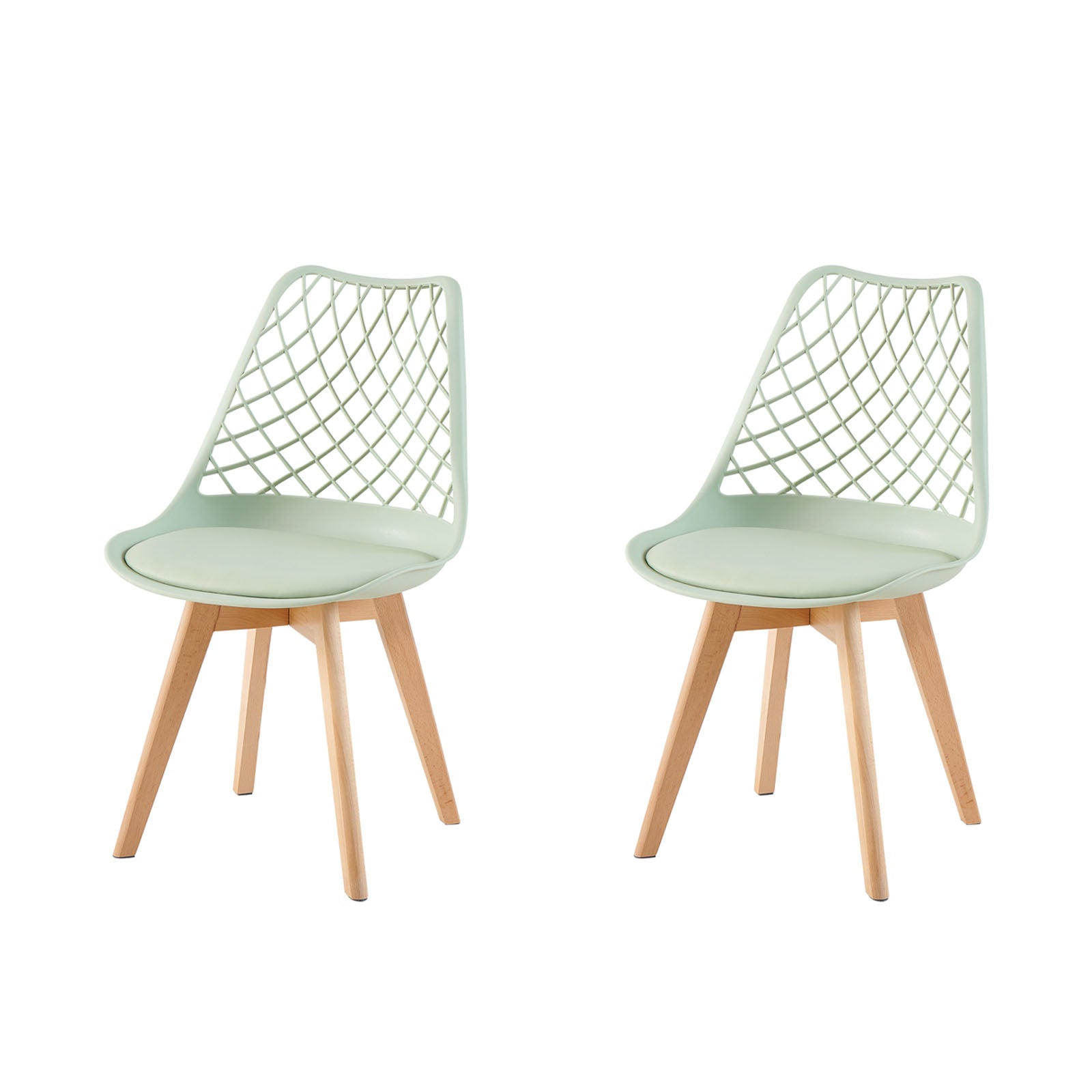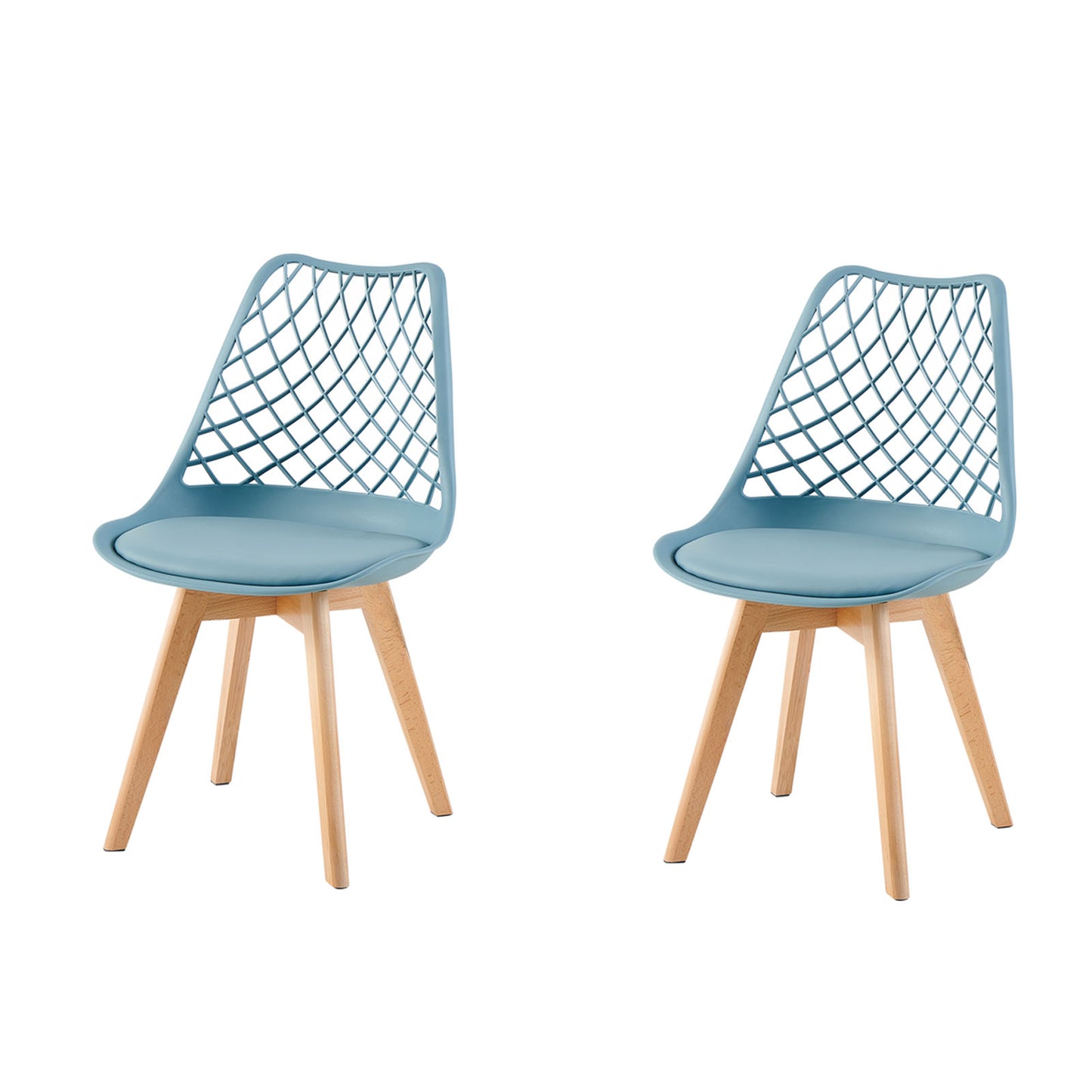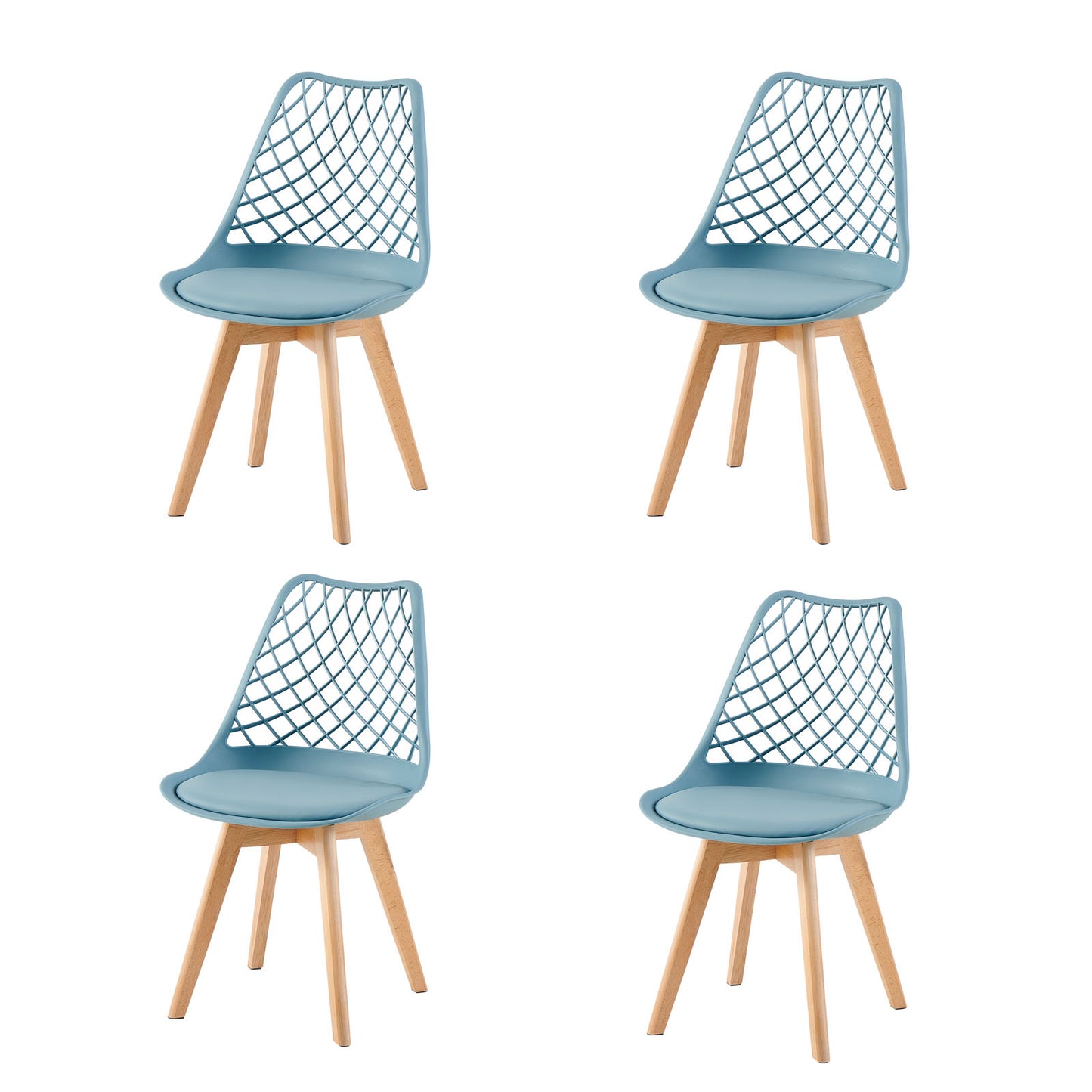 LEYDEN Moderne sedie da pranzo ispirate ai tulipani con schienale traforato - Gambe in faggio Set di 2/4 - Grigio chiaro blu/verde gelato
