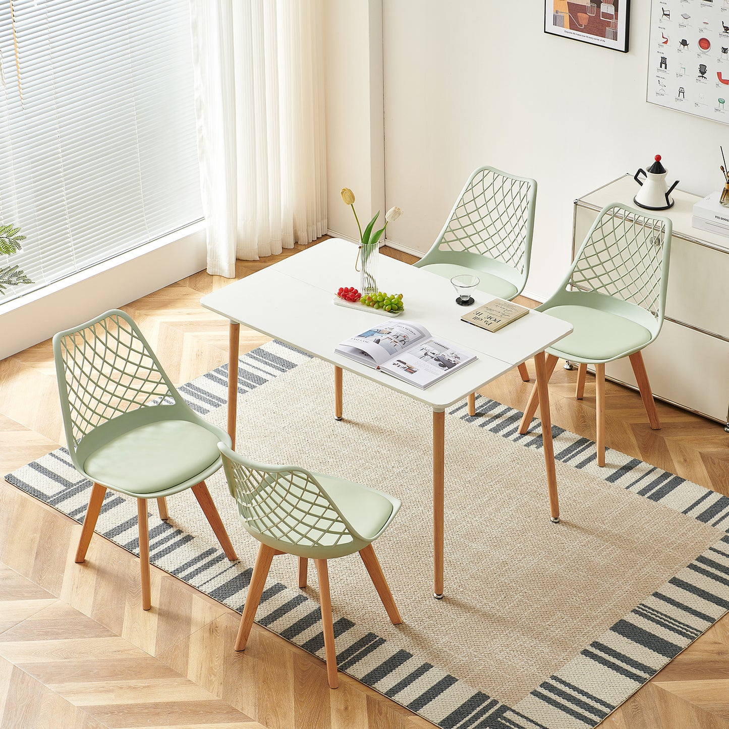 Rivoluziona la tua esperienza culinaria con queste sedie ergonomiche in plastica PP, ora disponibili nelle tonalità europee di tendenza: Nordic Mist Blue e Fresh Mint Green. Con schienali a traliccio modellati in 3D che reinterpretano la sedia Tulip di metà secolo con la moderna tecnologia del flusso d'aria, questa collezione unisce un design leggero e impilabile a una durevolezza di livello commerciale, ideale per appartamenti compatti, ambienti da bistrot e case sostenibili.