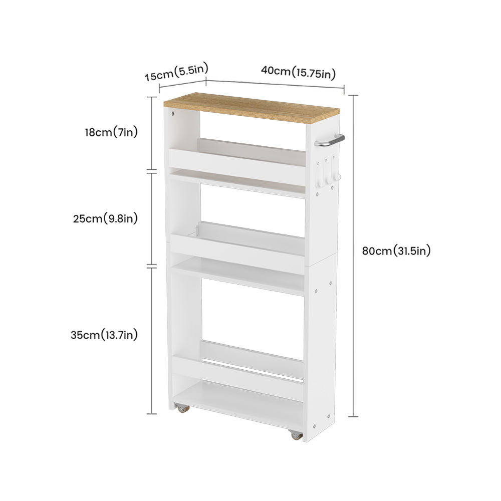 This narrow storage shelf (only 15cm deep, with dimensions of 40×15×80cm) is cleverly designed, making it ideal for small spaces such as kitchens, bathrooms, home offices, living rooms, and bedrooms. It not only saves space but also maximizes vertical storage, helping you keep everything tidy and organized.