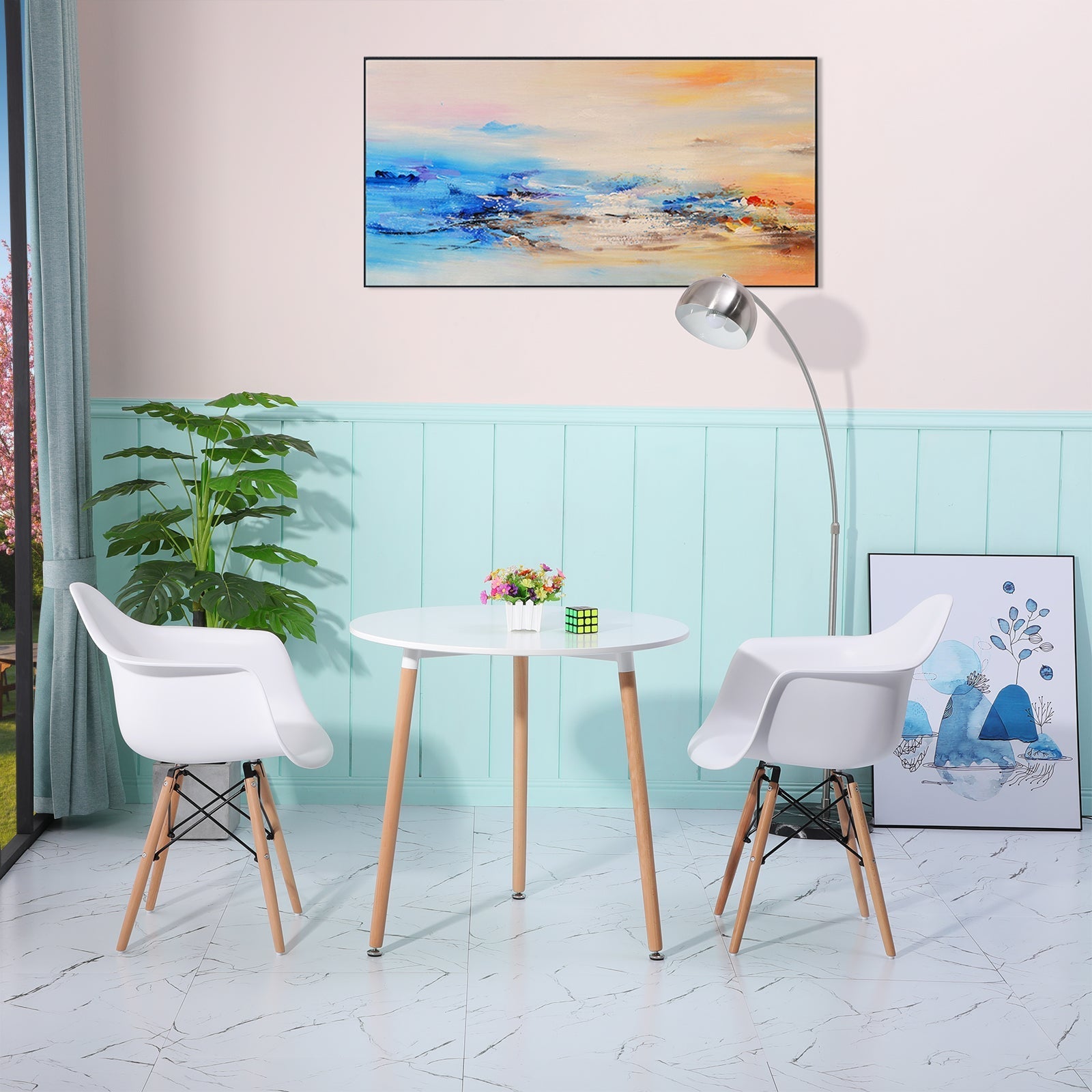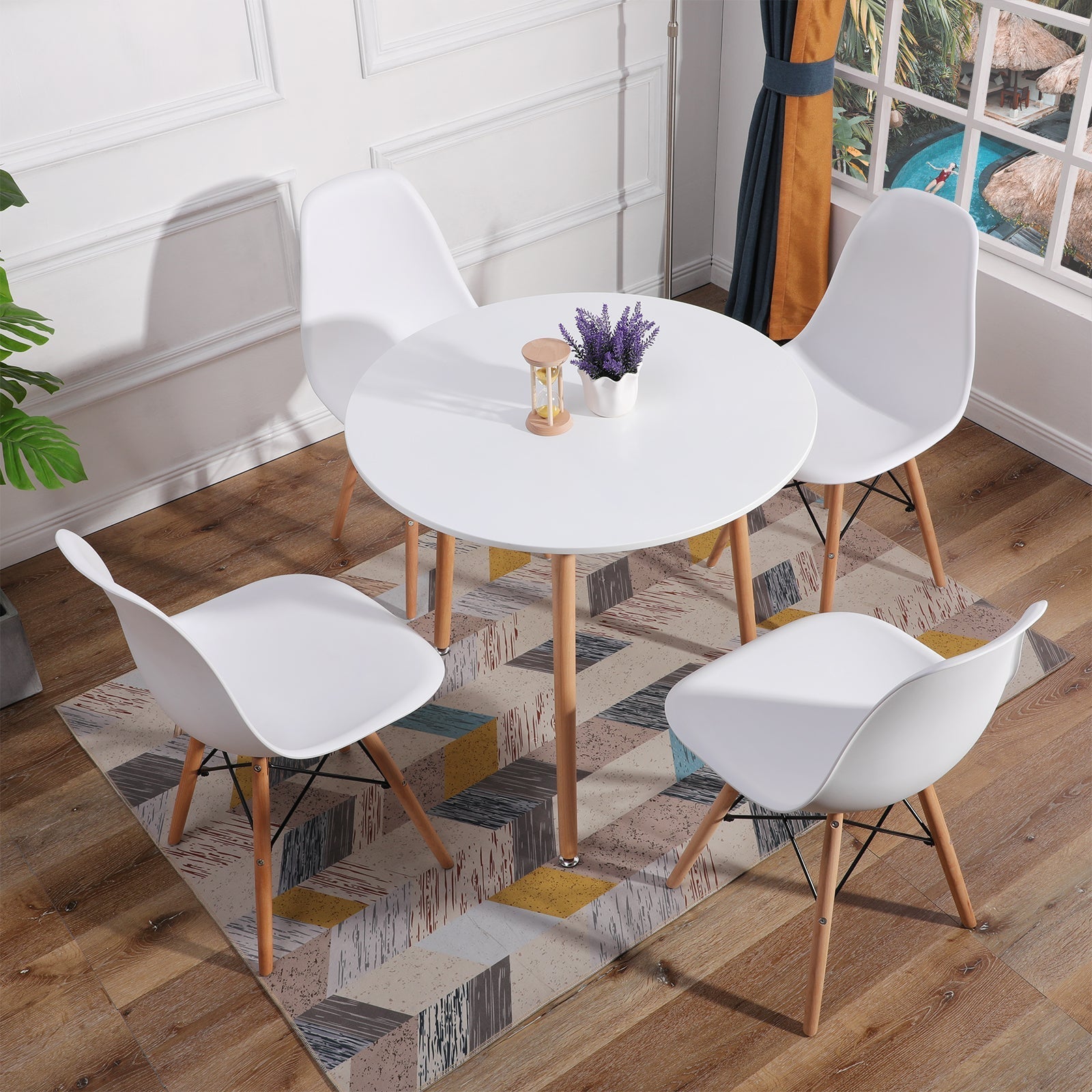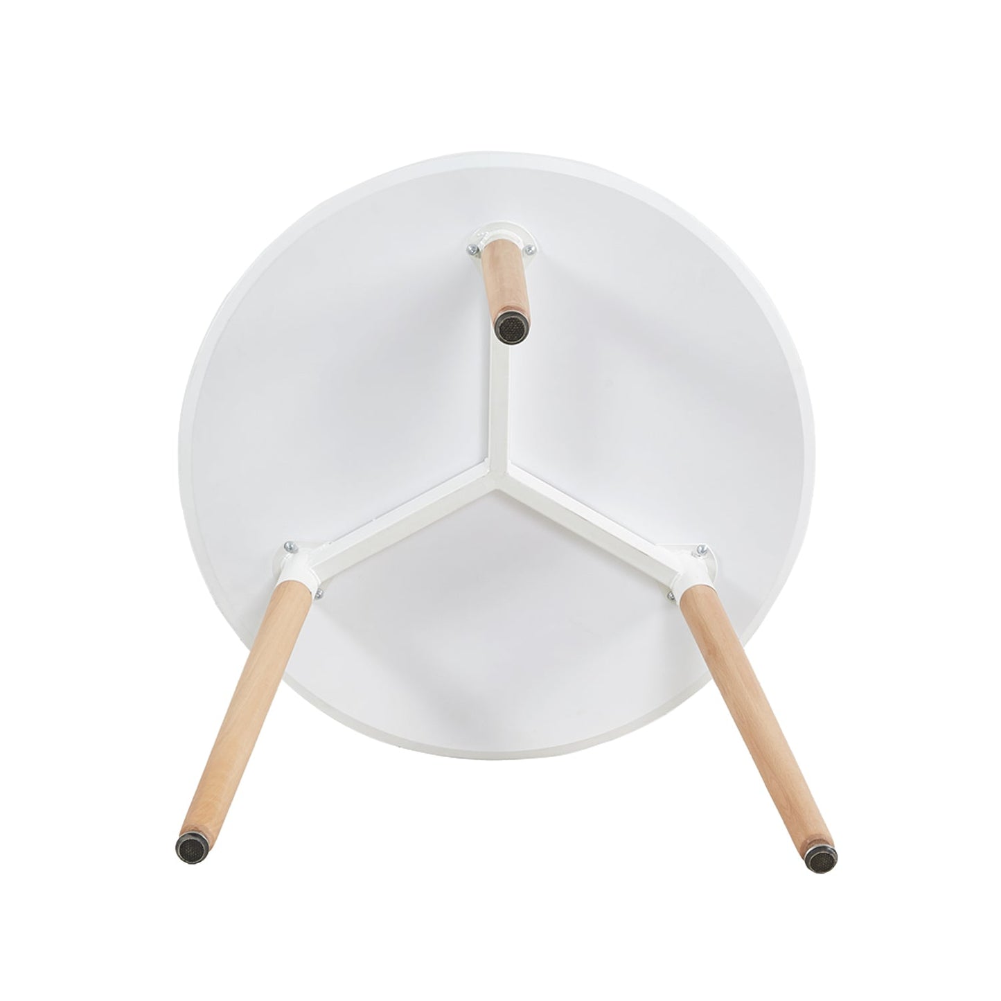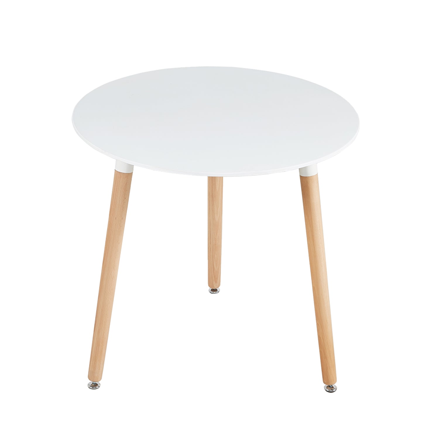 - Featuring a white MDF tabletop and light solid wood legs, this table exudes the cozy and inviting ambiance of popular Scandinavian design, making it a perfect addition to any home decor.