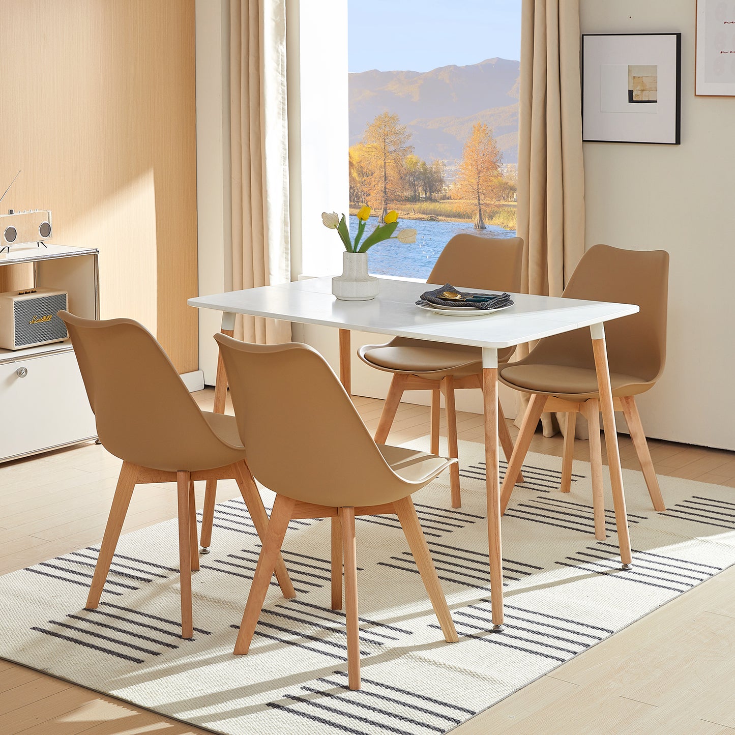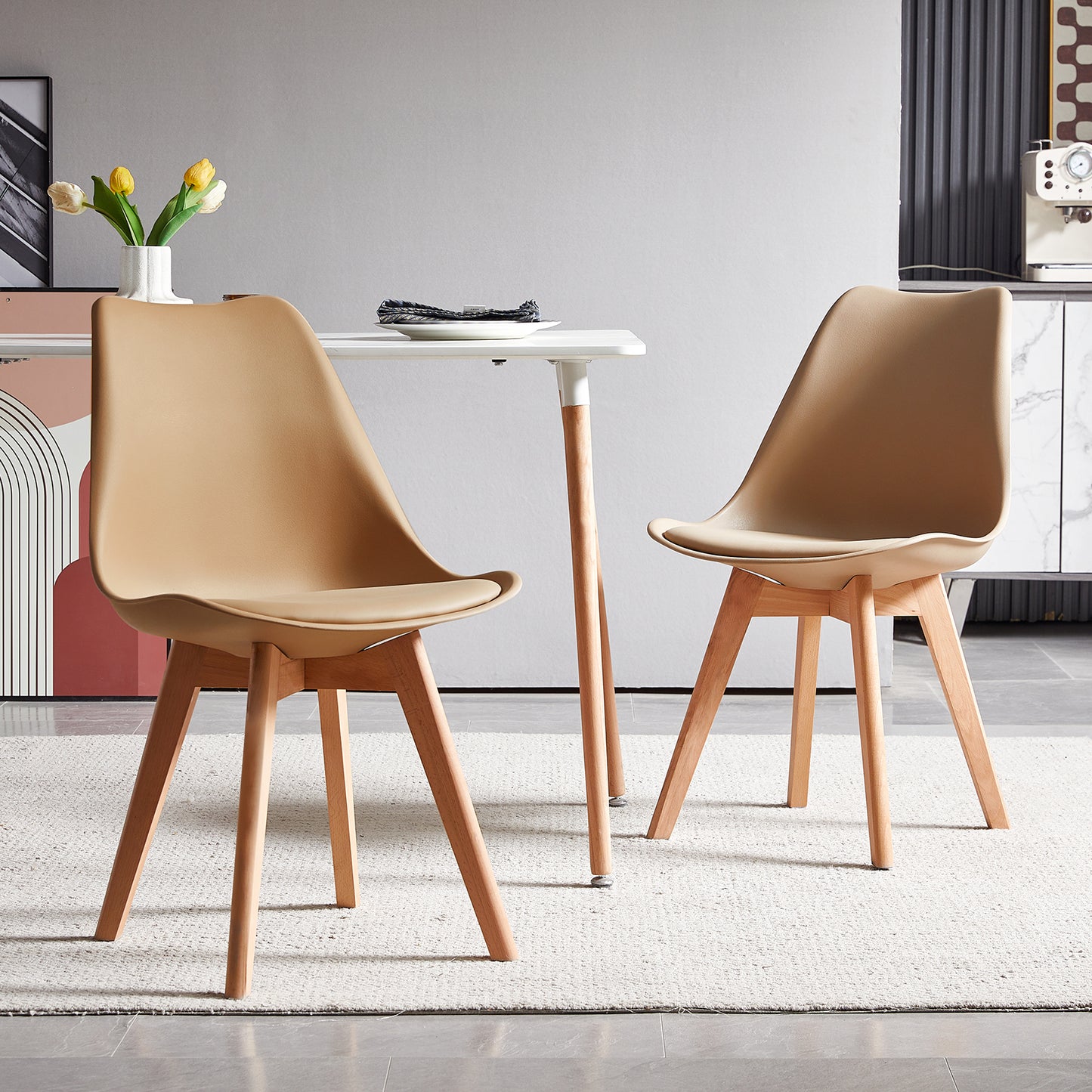 TULIP Upholstered Dining Chair-Kakhi